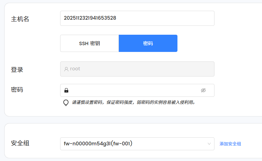 密码:设置 SSH 的 root 密码并妥善保存